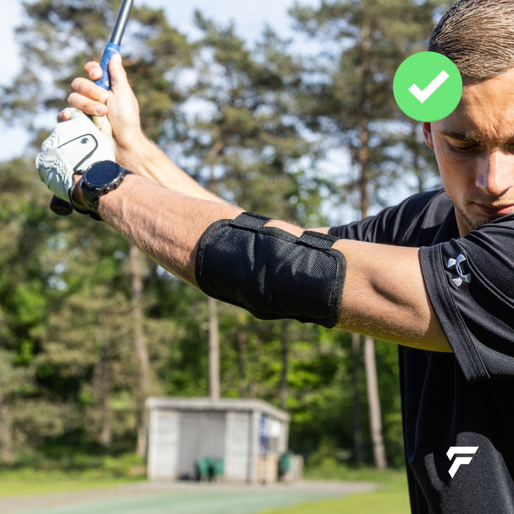 The Swing Signal uses a built in alarm that sounds the moment your lead arm bends. When you maintain proper arm extension and posture, it stays silent, giving you instant, real-time feedback.