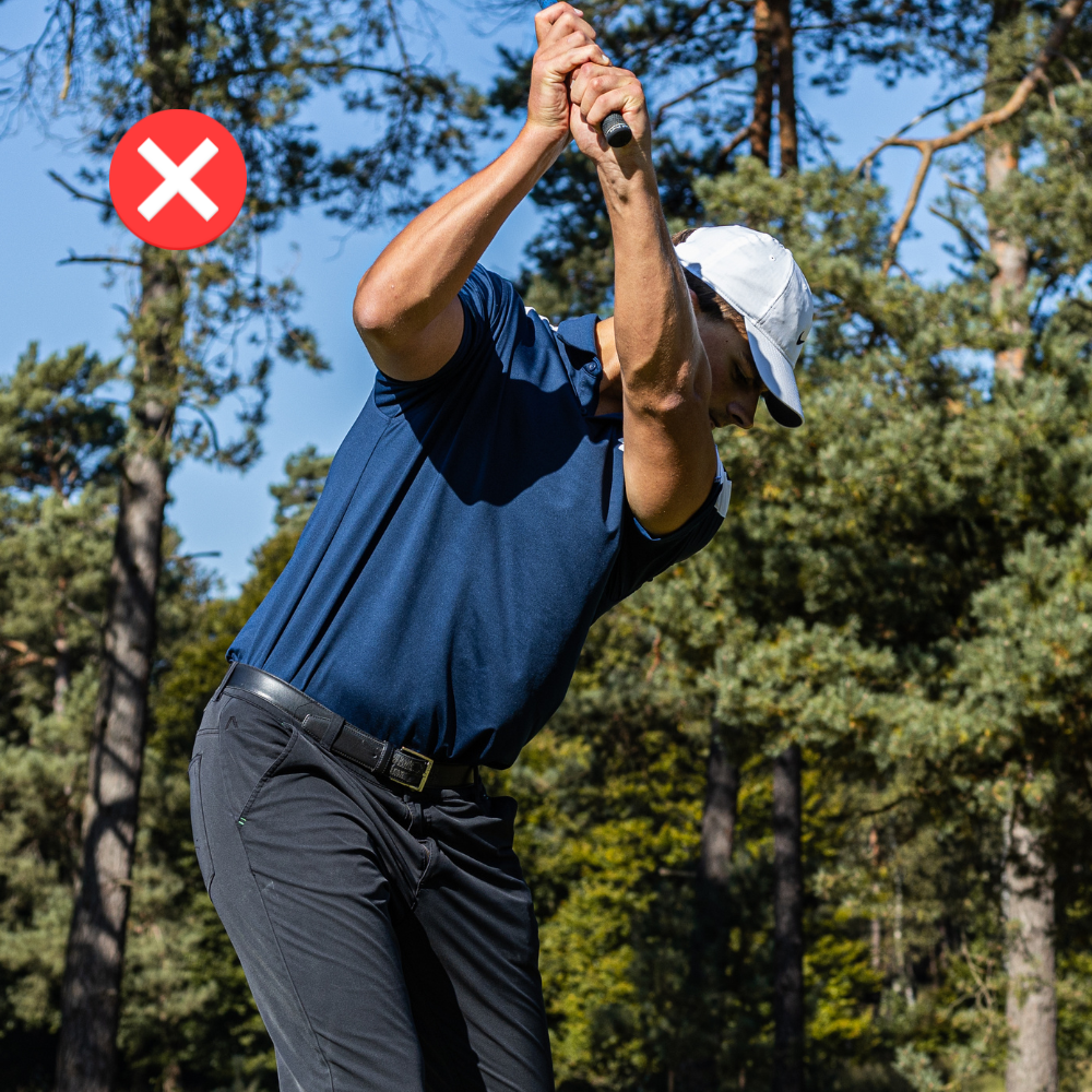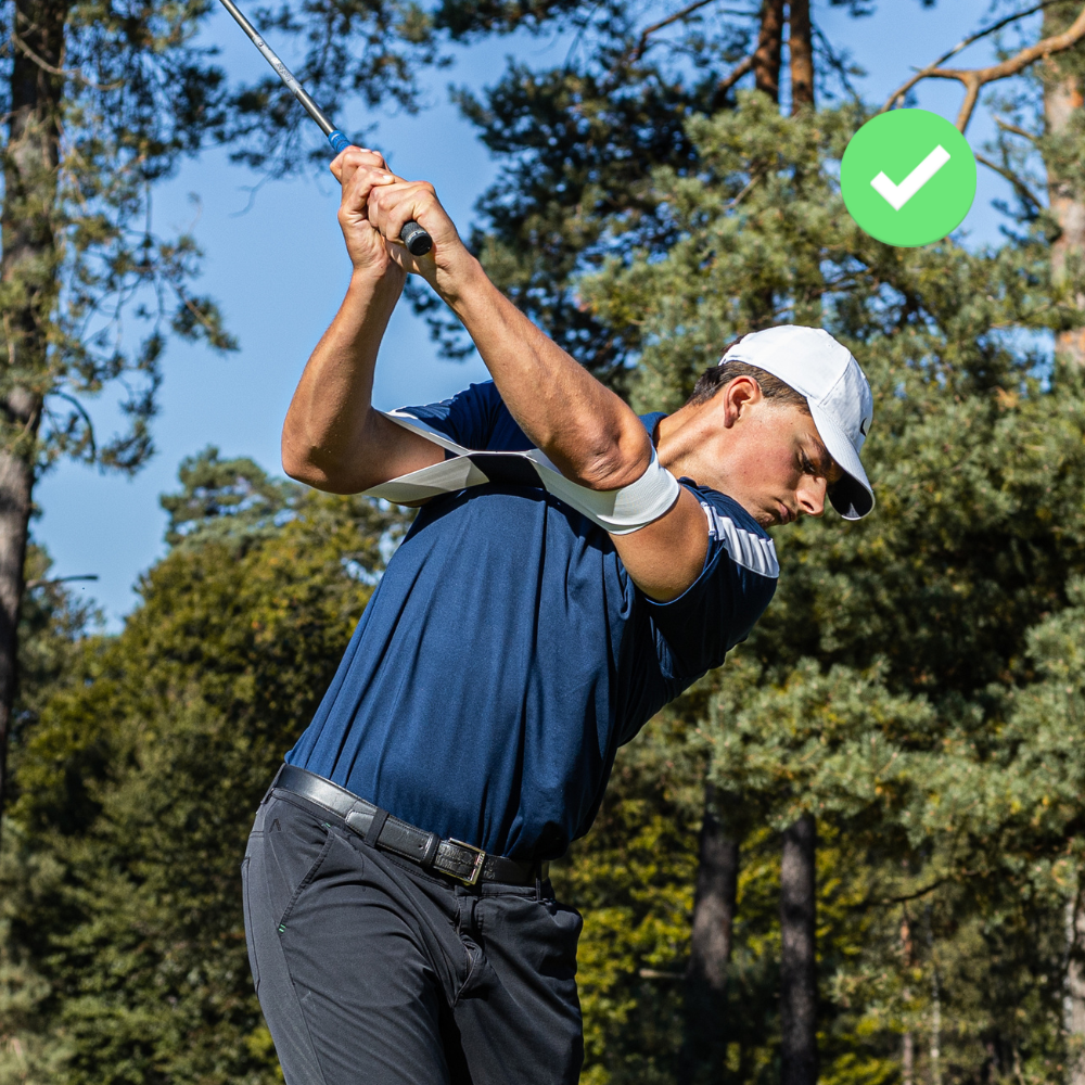 Yes, the Connection Band is specifically designed to prevent the flying elbow by keeping your arms close to your body throughout the swing. With the connection Band it's impossible to let your elbow fly.